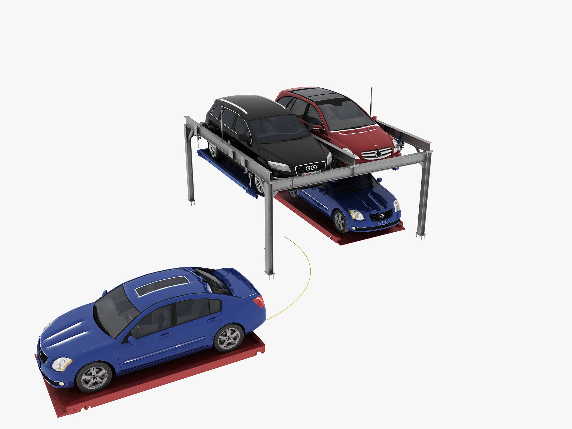 ? 堆垛機通過在巷道內水平運動的同時完成車輛的垂直升降,使搬運器覆蓋不同停車層的每一個車位;