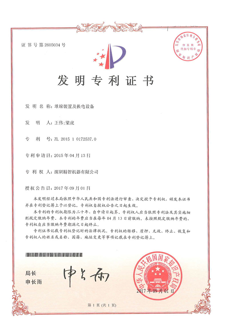 您現在的位置:首頁 > 關于精智 > 專利證書